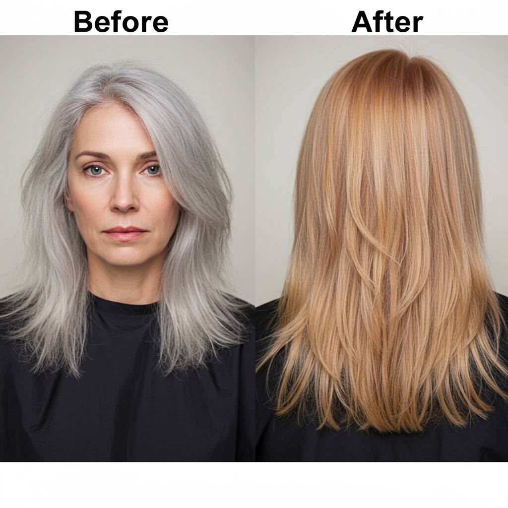 実際のビフォーアフター事例を見てみましょう。60代女性のAさんは、白髪が7割程度ありましたが、明るめのベージュカラーで染めたところ、顔色が一気に明るくなり、周囲から「若返った?」と質問されるようになったそうです。